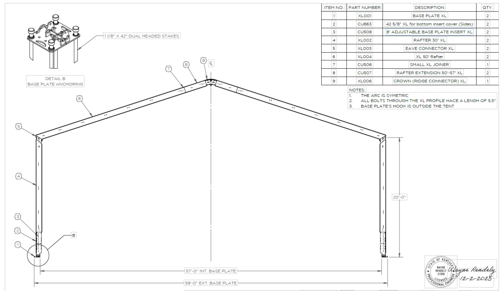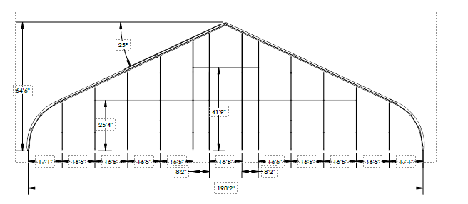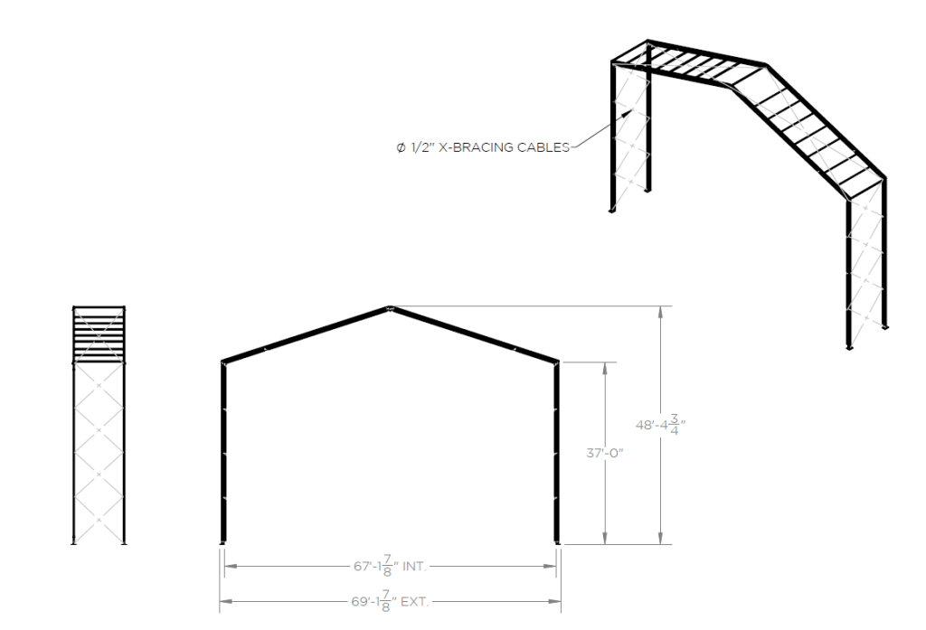 This design maximizes horizontal and vertical clearance while maintaining high wind and snow load performance, delivering a true high-bay, wide-span temporary building solution.
